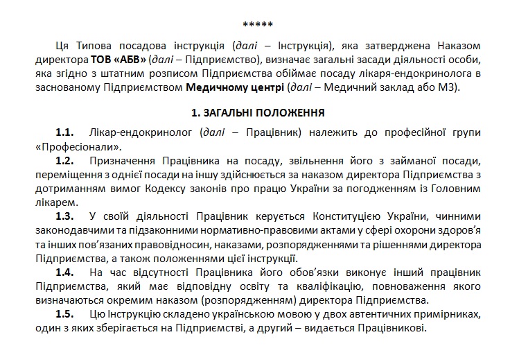 Документ необходим для выполнения пунктов 2.16.-2.19. Стандартов аккредитации учреждений здравоохранения, ст. 29, 31 Кодекса законов о труде Украины.