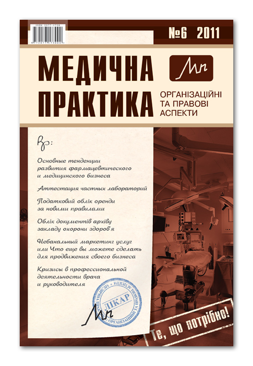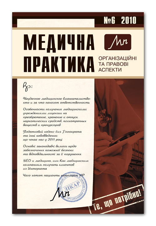 Журнал «Медична практика: організаційні та правові аспекти» — это поистине уникальное в медиа-пространстве Украины периодическое издание для собственников и руководителей медицинских учреждений частной и иных форм собственности, различного профиля деятельности.