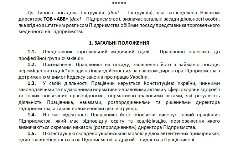Документ необходим для выполнения пунктов 2.16.-2.19. Стандартов аккредитации учреждений здравоохранения, ст. 29, 31 Кодекса законов о труде Украины.