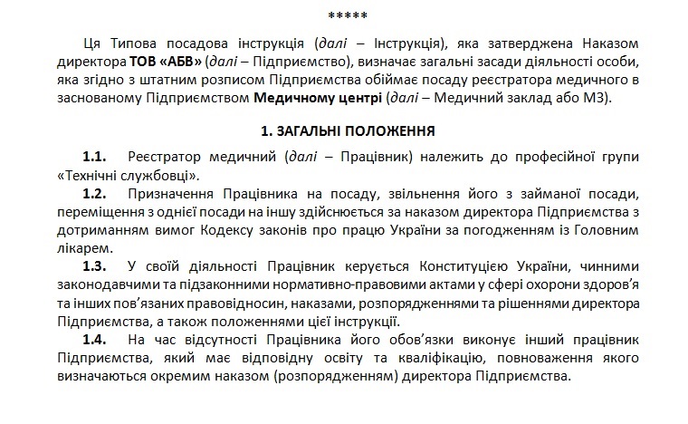 Документ необходим для выполнения пунктов 2.16.-2.19. Стандартов аккредитации учреждений здравоохранения, ст. 29, 31 Кодекса законов о труде Украины.