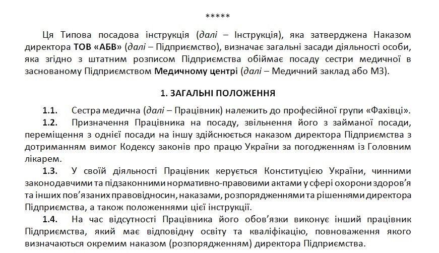 Документ необходим для выполнения пунктов 2.16.-2.19. Стандартов аккредитации учреждений здравоохранения, ст. 29, 31 Кодекса законов о труде Украины.