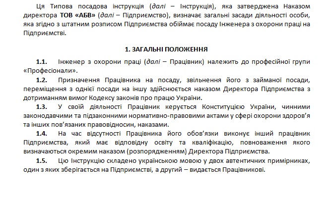 Документ необходим для выполнения пунктов 2.16.-2.19. Стандартов аккредитации учреждений здравоохранения, ст. 29, 31 Кодекса законов о труде Украины.