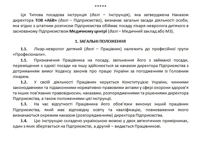 Документ необходим для выполнения пунктов 2.16.-2.19. Стандартов аккредитации учреждений здравоохранения, ст. 29, 31 Кодекса законов о труде Украины.