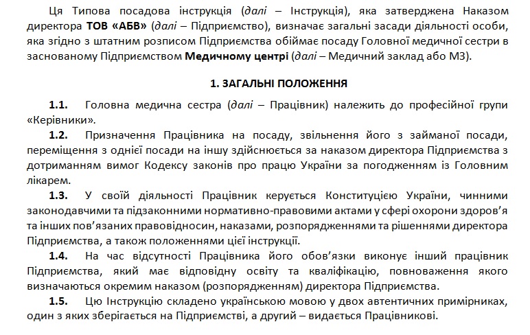 Типова посадова інструкція Головної медичної сестри