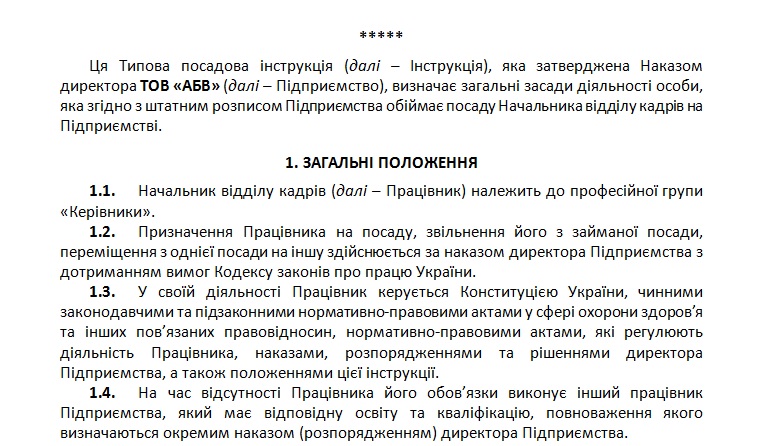 Описание: Посадова інструкція – організаційно-правовий документ, що визначає основні кваліфікаційні вимоги, завдання, функції, повноваження, обов’язки і відповідальність окремого працівника Підприємства, необхідні для здійснення ним службової діяльності відповідно до займаної посади.