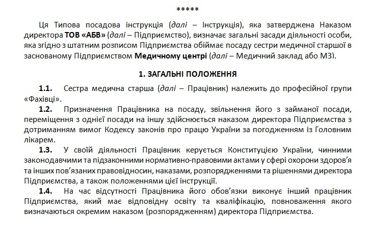 Описание: Посадова інструкція – організаційно-правовий документ, що визначає основні кваліфікаційні вимоги, завдання, функції, повноваження, обов’язки і відповідальність окремого працівника Підприємства, необхідні для здійснення ним службової діяльності відповідно до займаної посади.