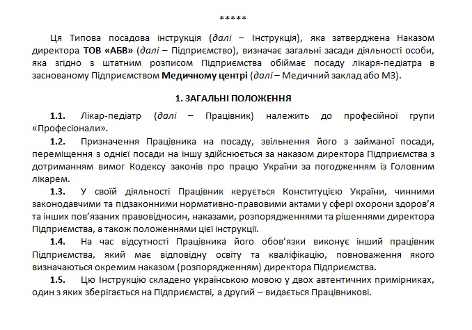 Типова посадова інструкція Лікаря-педіатра